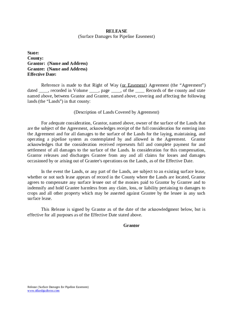 Get the free Release of Surface Damages For Pipeline Easement template