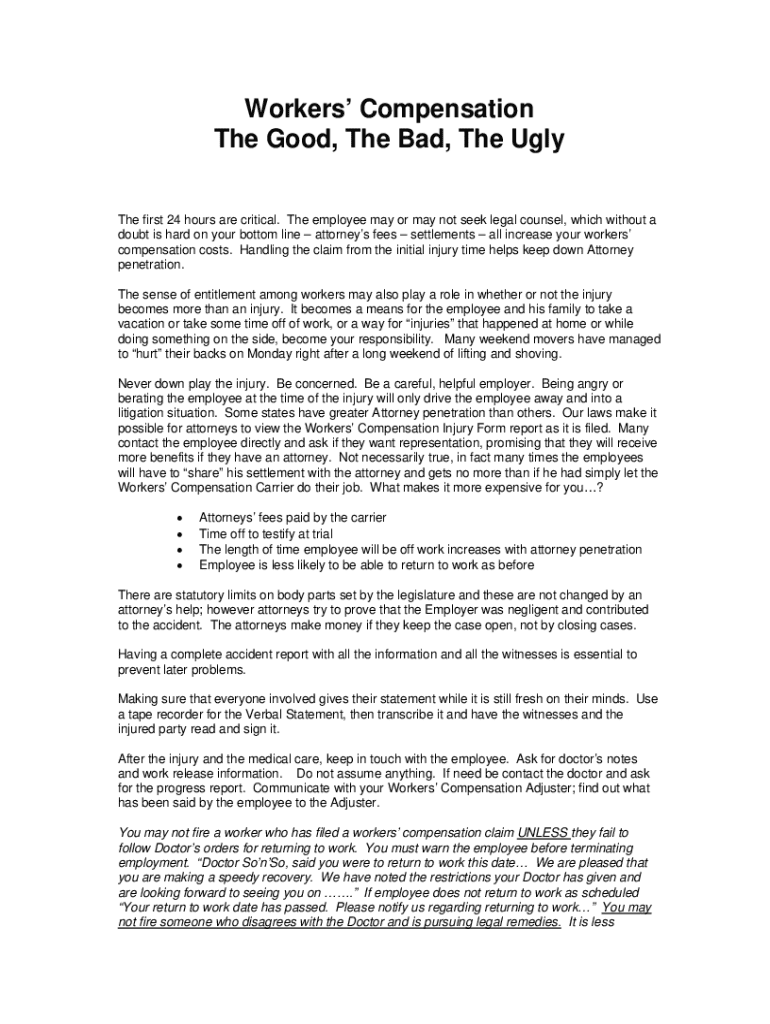 Get the free Workers' Compensation Good, Bad and Ugly Best Practices Training Pamphlet