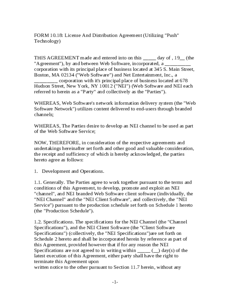 Get the free License and Distribution Agreement - Utilizing Push Technology template