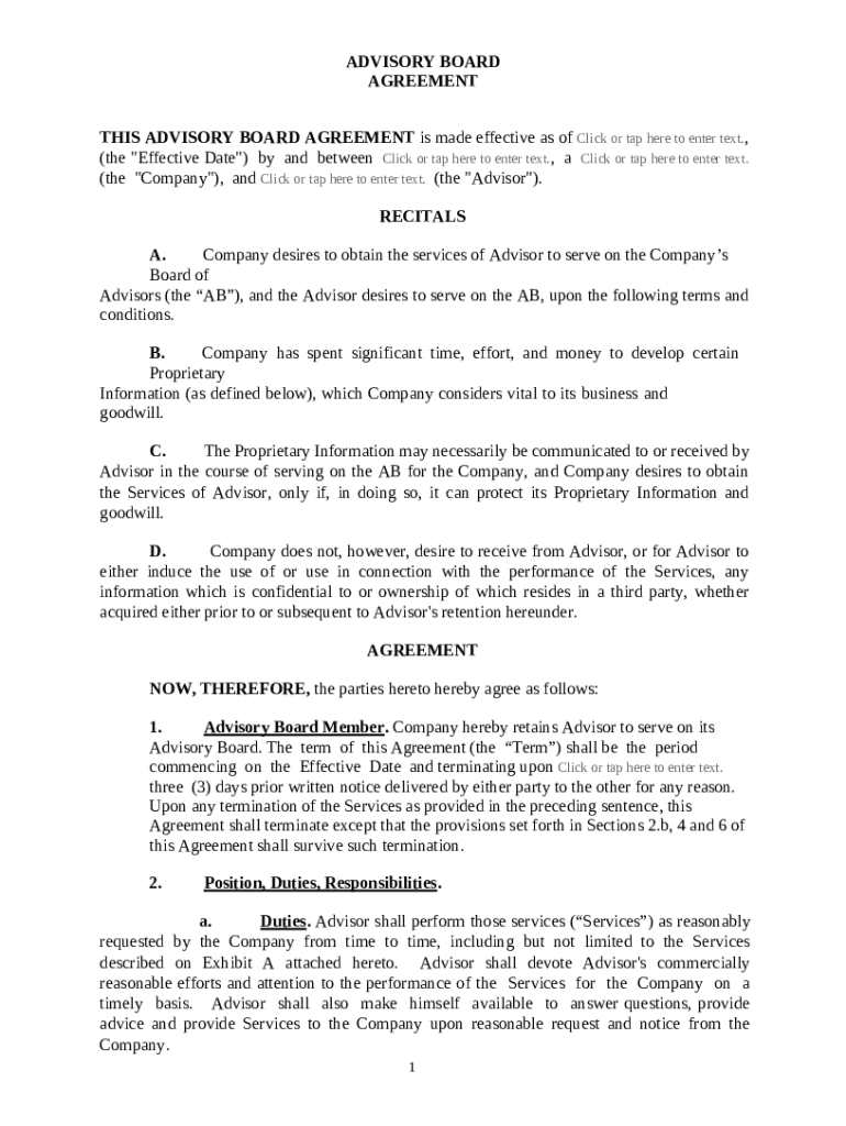 Advisory Board Agreement Form Guide