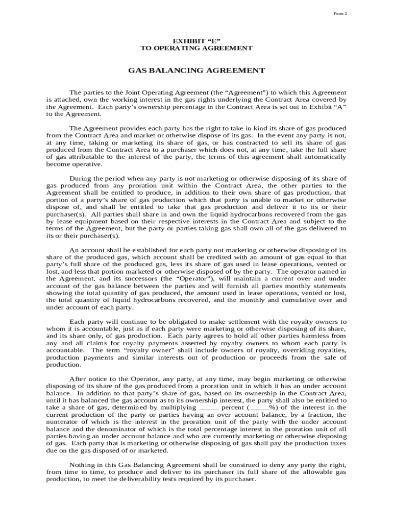 Navigating Exhibit E to Operating Agreement: Gas Balancing Agreement