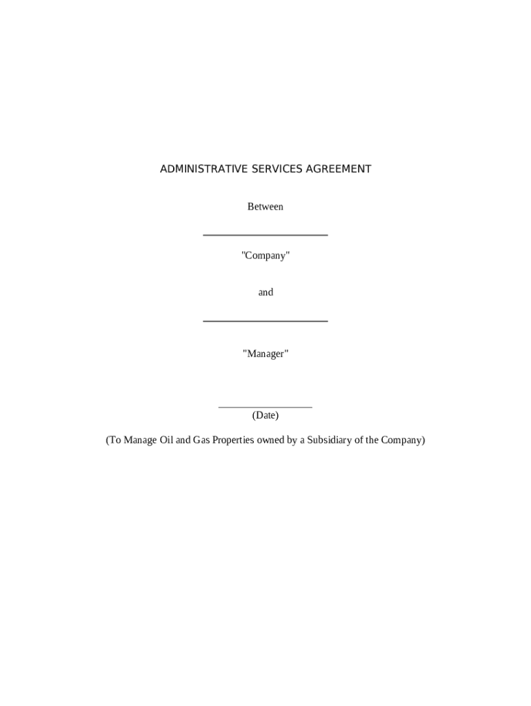 An administrative services agreement (ASA) is a crucial document that outlines the responsibilities and expectations of a management entity in charge of providing support services to another business. These agreements are commonly used in various sectors, including oil and gas, to ensure smooth operations. Employers can clarify the roles of managers and their compensation while protecting property rights and interests.