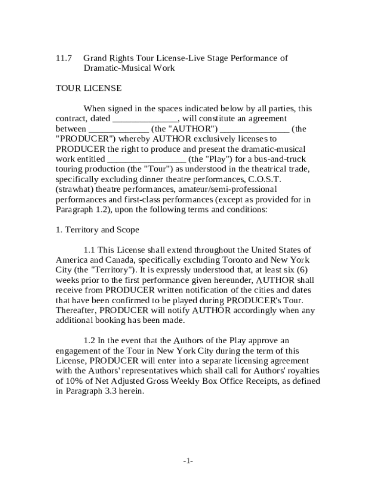 Get the free Grand Rights Tour License - Live Stage Perance of Dramatic - Musical Work template