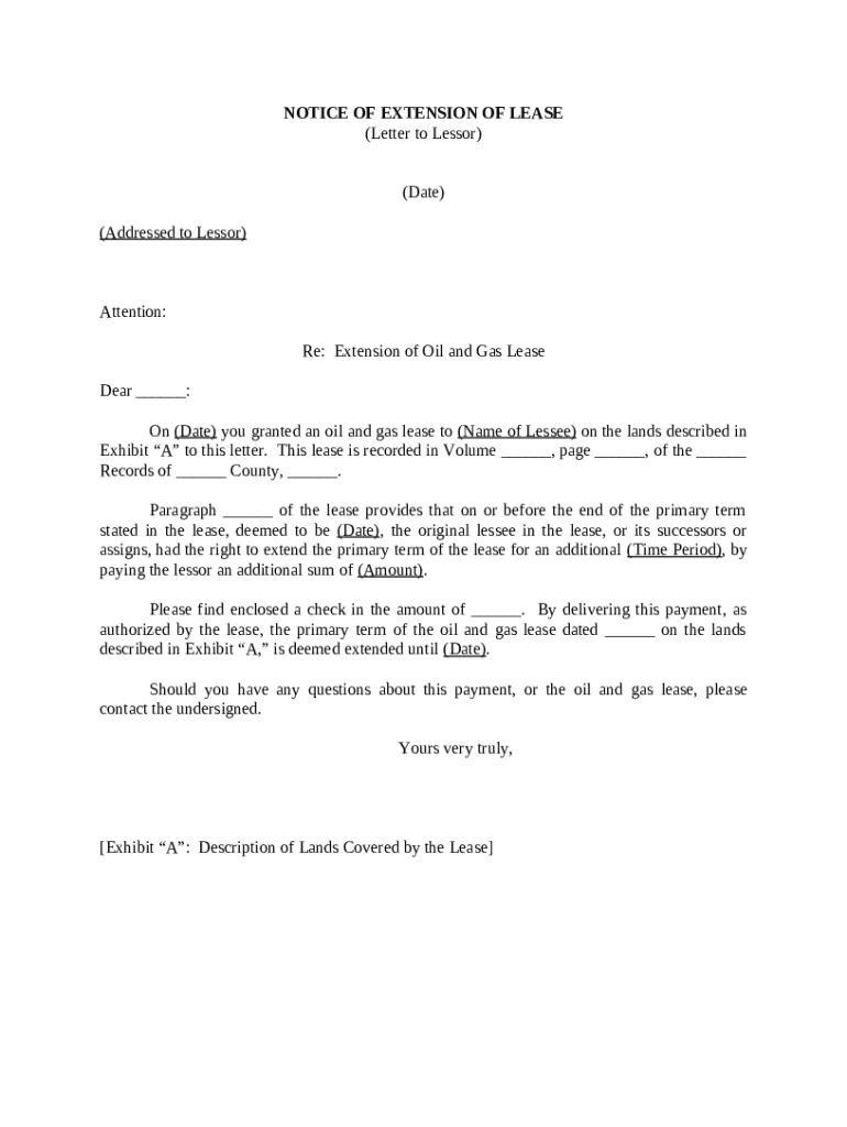 A notice of extension of form is a critical document in lease agreements, allowing parties to extend the terms of a lease. This notice is essential for maintaining the contractual relationship between landlords and tenants, ensuring clarity and minimizing potential disputes related to lease renewals.