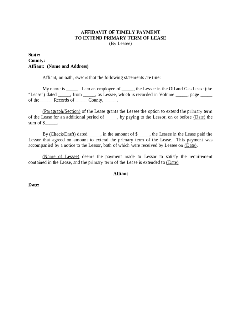 The Affidavit addresses the Timely Payment of rentals to Extend Primary Term of Lease (by Lessee).
