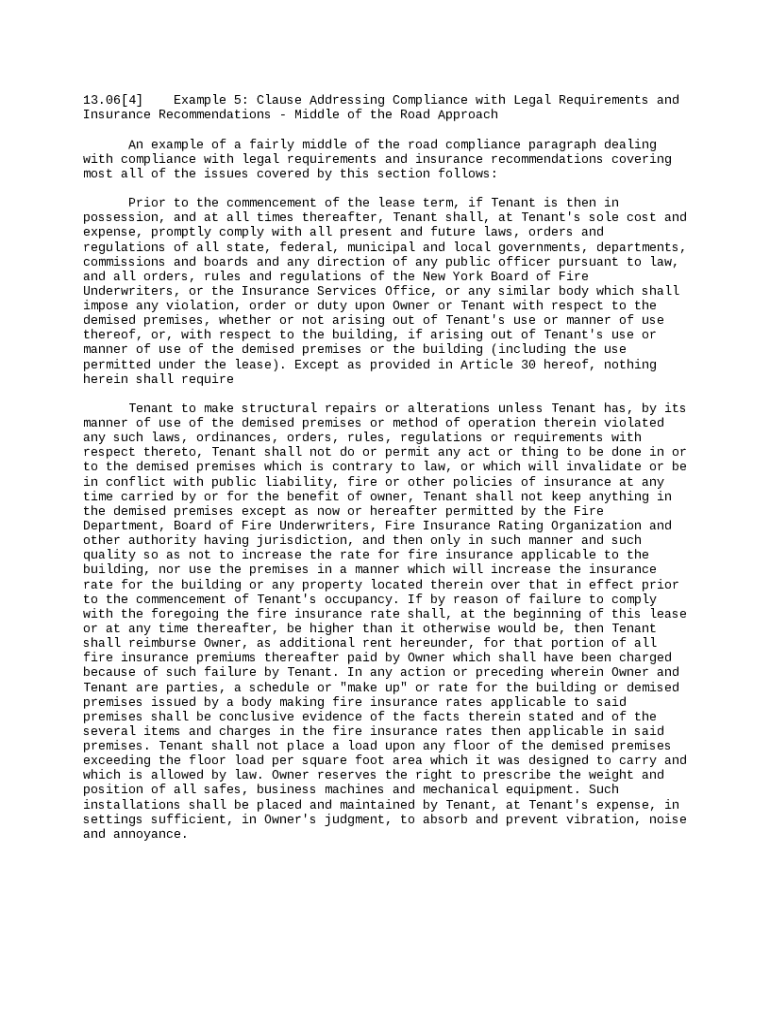 Get the free Clause Addressing Compliance with Legal Requirements and Insurance Recommendations t...