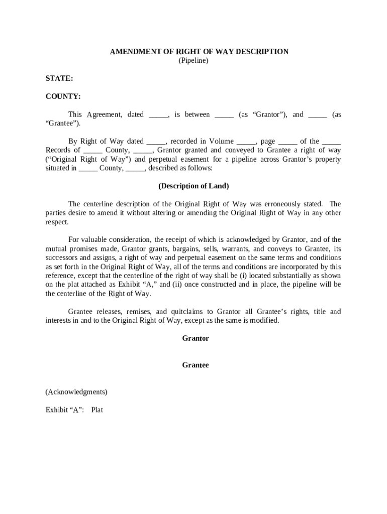 Filling out an amendment of right of way form is essential for accurately updating or modifying the legal description of a pipeline's easement. This guide outlines the necessary steps and provides detailed information to ensure compliance and proper documentation.