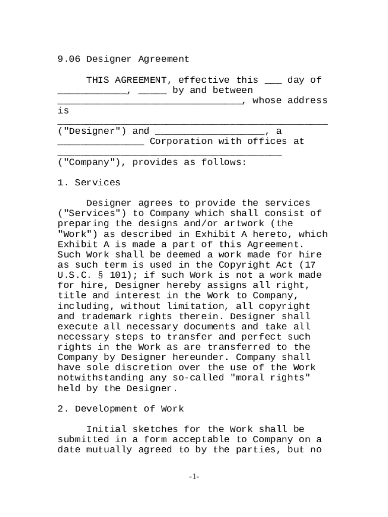 Get the free Designer Agreement for Artwork template