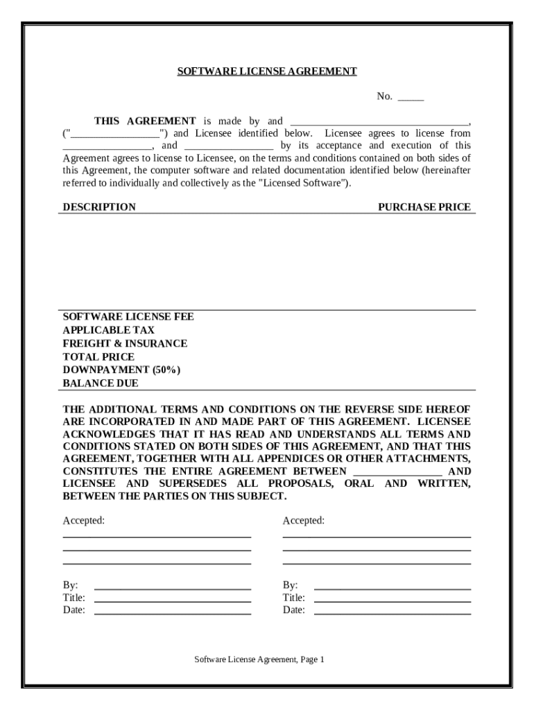 Get the free Software License Agreement - Simple template