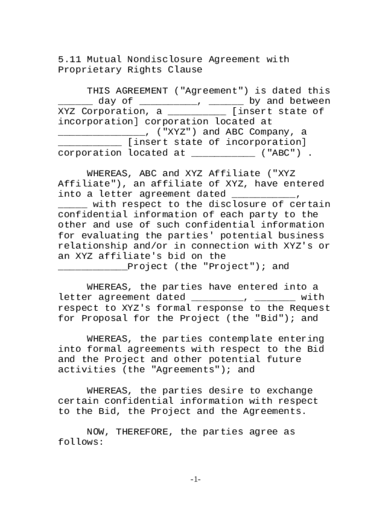 Get the free Mutual Nondisclosure Agreement with Proprietary Rights Clause template