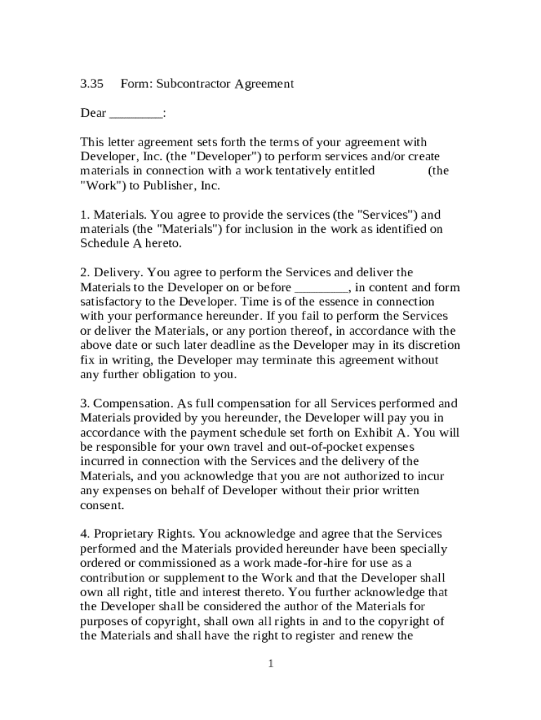 Get the free Subcontractor Agreement template