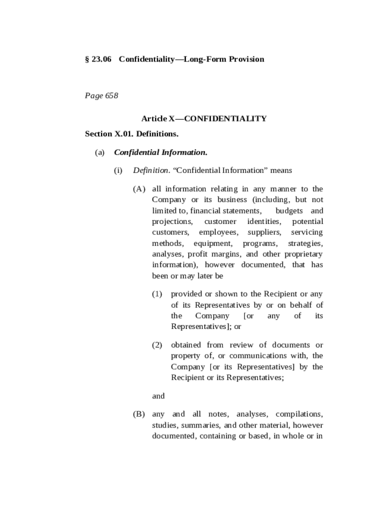 A confidentiality long-form provision is a legal document that outlines the terms under which sensitive information is shared and protected between parties.