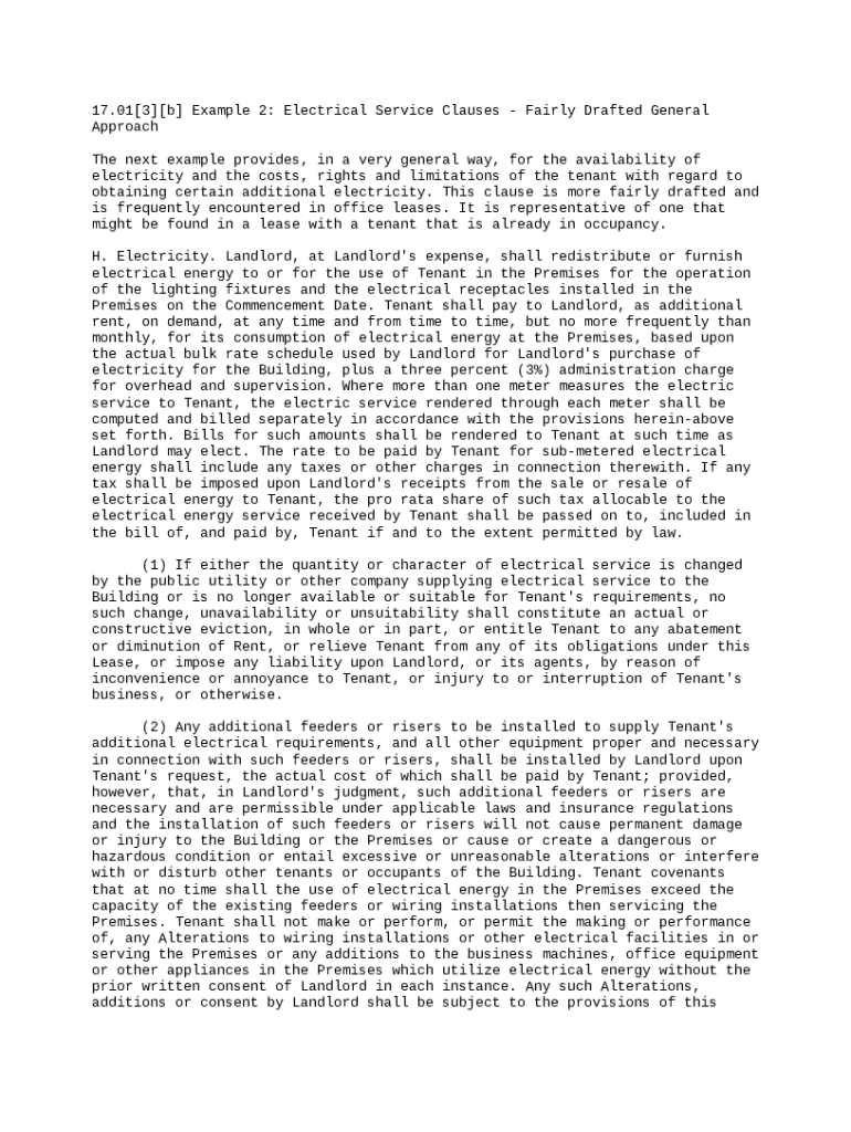 Electrical service clauses define the terms between landlords and tenants regarding the provision and usage of electricity. These clauses are crucial in rental agreements as they outline responsibilities, payment obligations, and the rights of both parties involved.