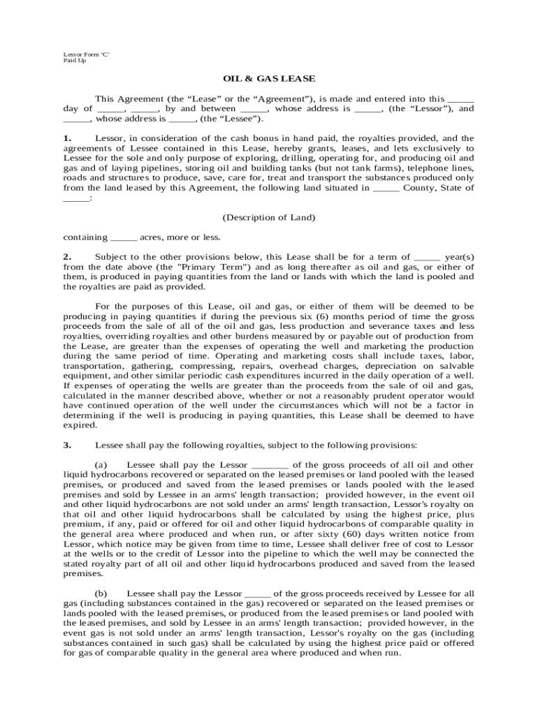 Comprehensive Guide to the Lessor Form '' Paid Up Oil Gas Lease