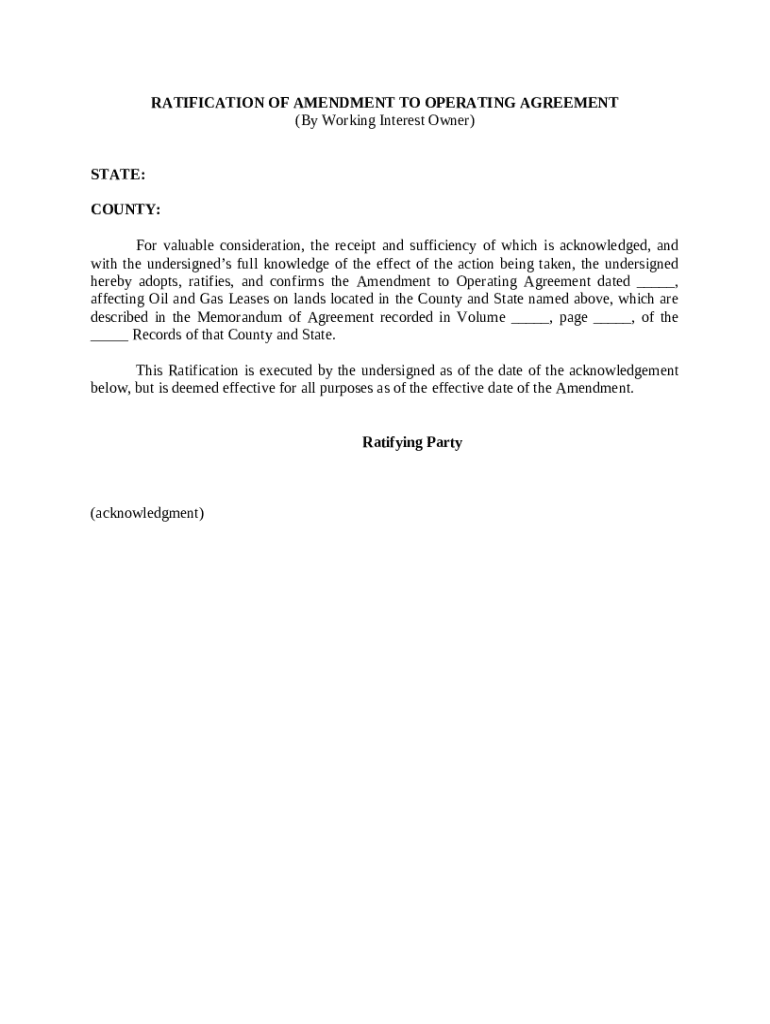 Get the free Ratification of Amendment to Operating Agreement - By Working Interest Owner template