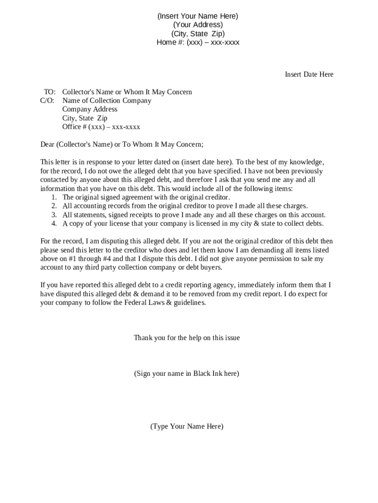 Mention your rights regarding the removal of disputed debt from credit reports.