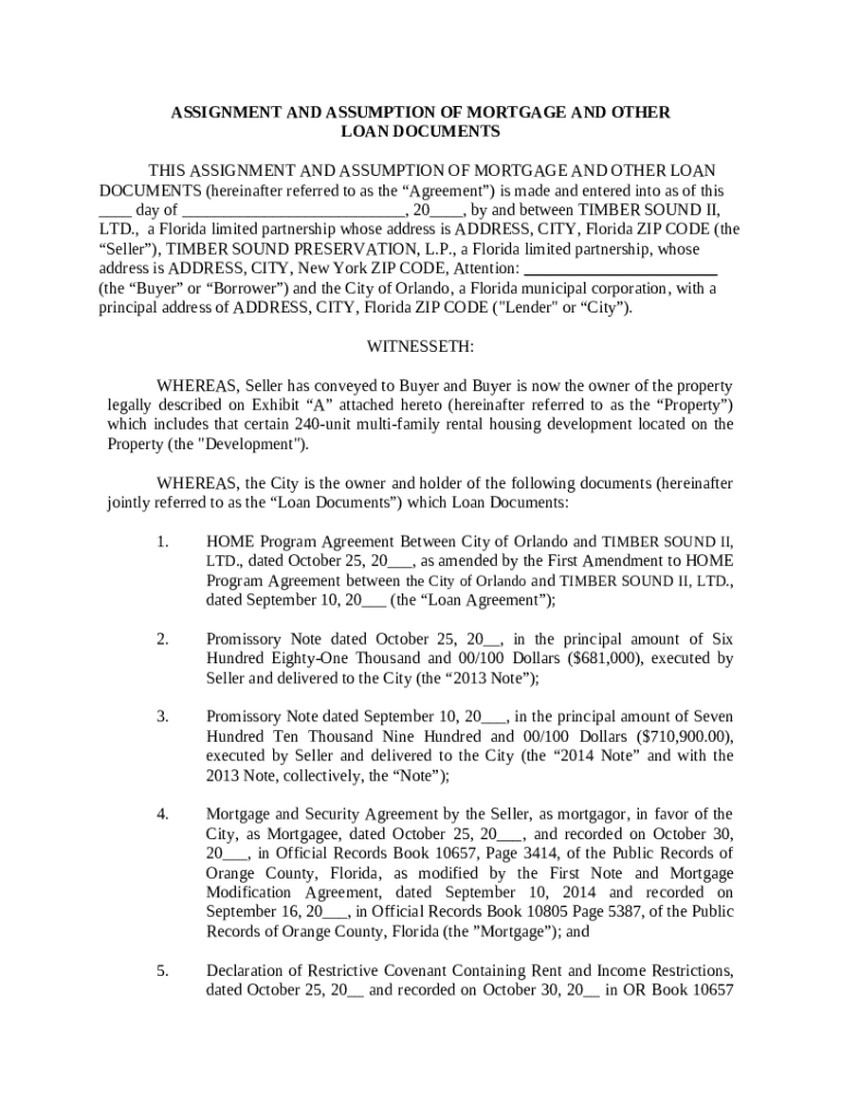 Get the free Assignment and Assumption of Mortgage and Other Loan Documents template