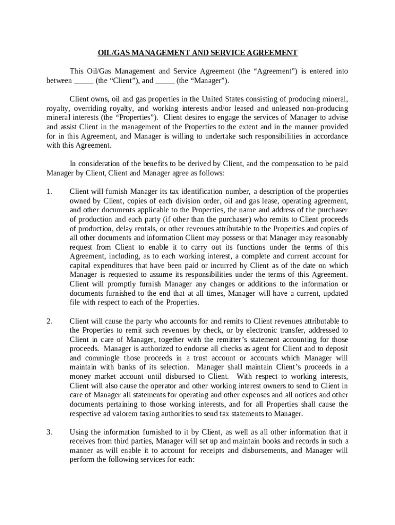 Get the free Oil / Gas Management and Service Agreement template