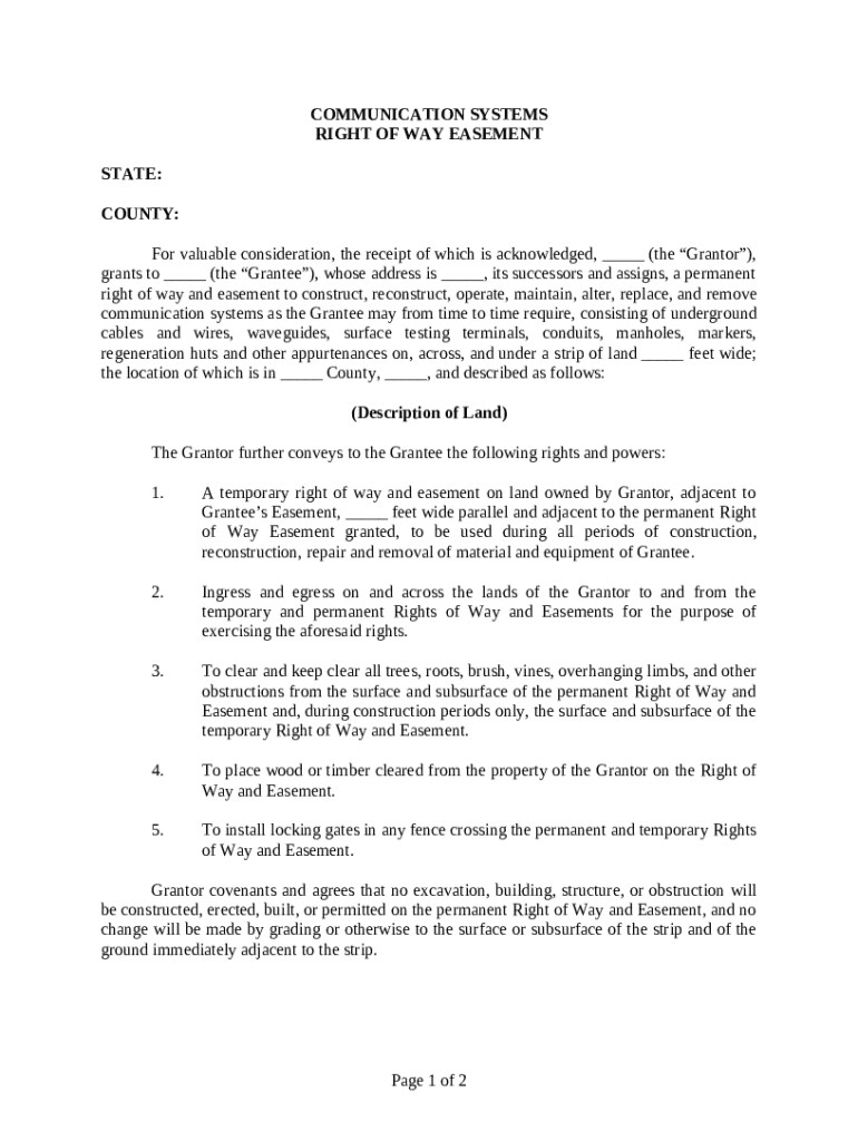 Get the free Communication Systems Right of Way Easement template