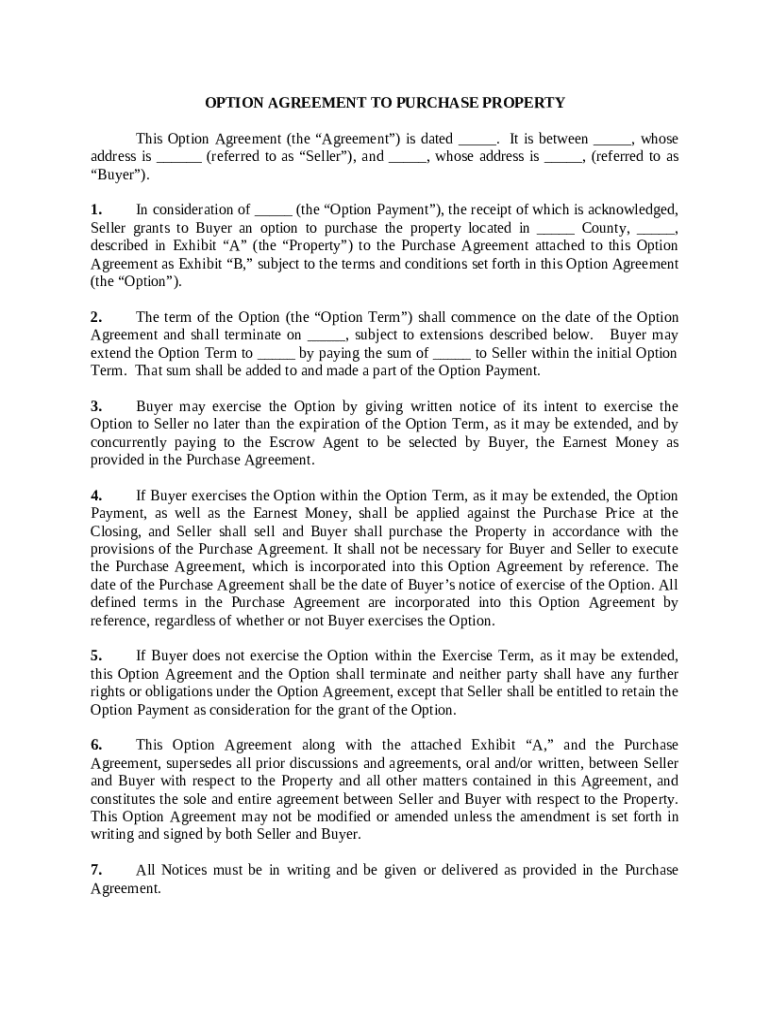 Understanding critical terms within the option agreement is essential for both buyers and sellers. Some terms may significantly affect how the agreement is executed.