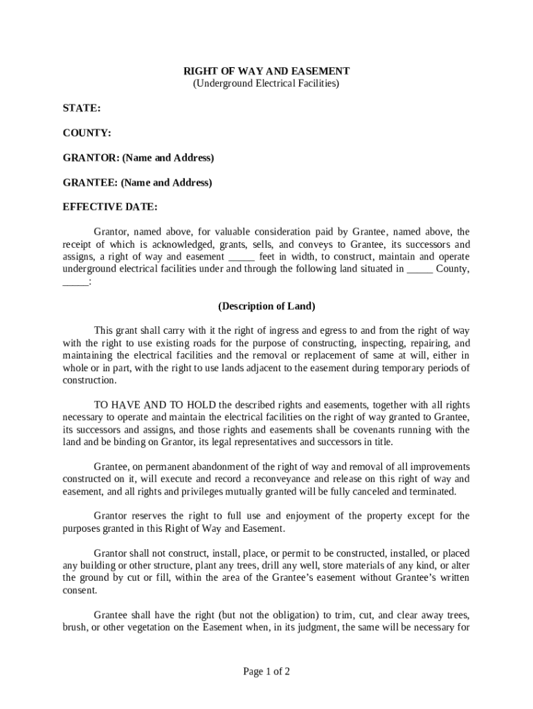 Get the free Right of Way and Easement (Underground Electrical Facilities) template