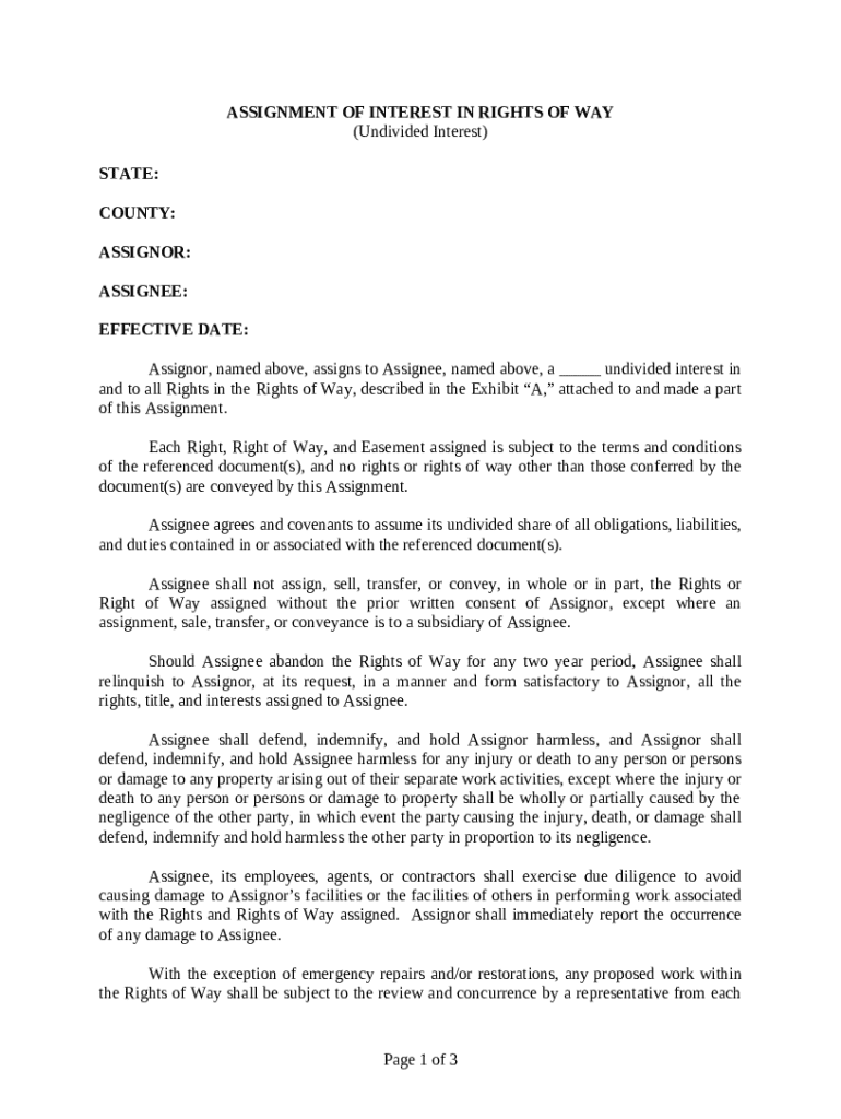 Get the free Assignment of Interests in Right of Way (Undivided Interest) template