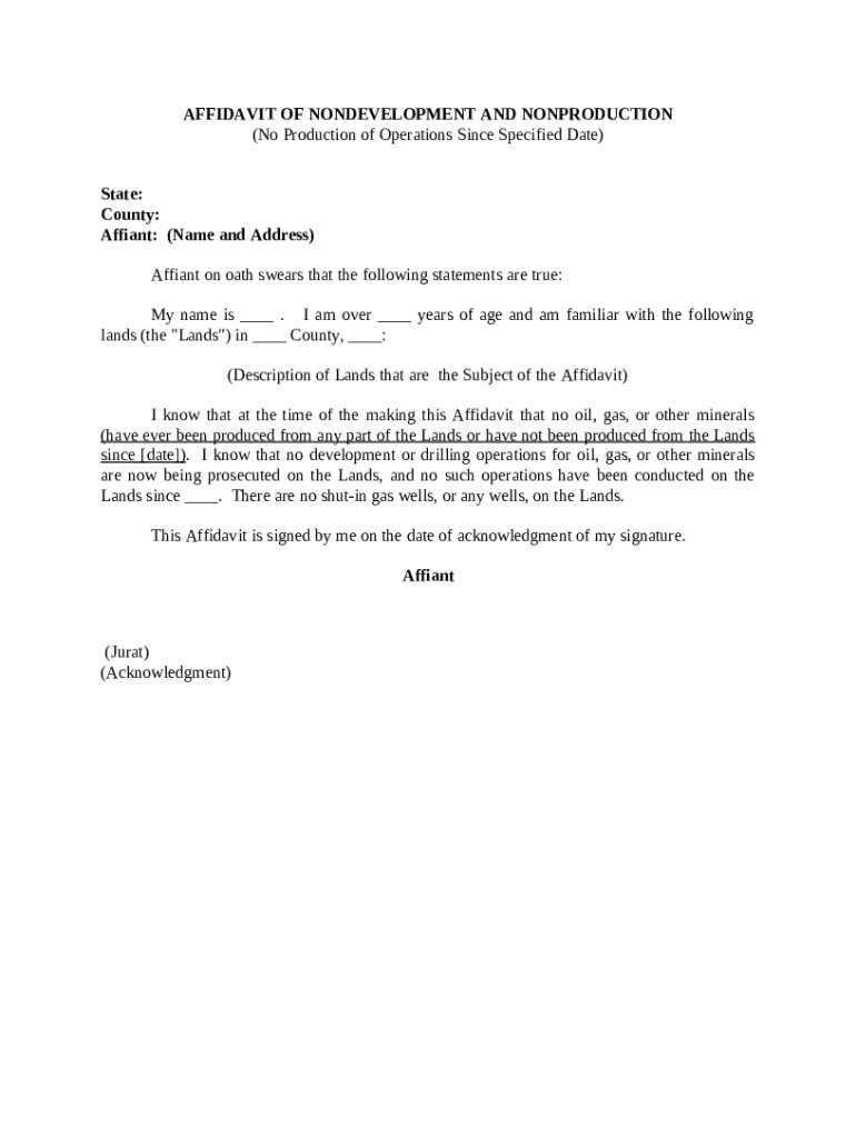 Get the free Affidavit of Nondevelopment and Nonproduction No Production of Operations Since Spec...