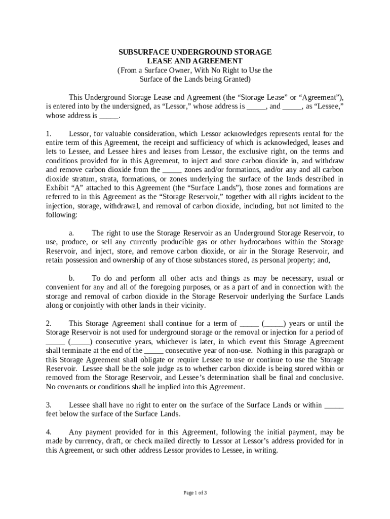 Get the free Subsurface Underground Gas Storage Lease and Agreement (From a Surface Owner, With N...