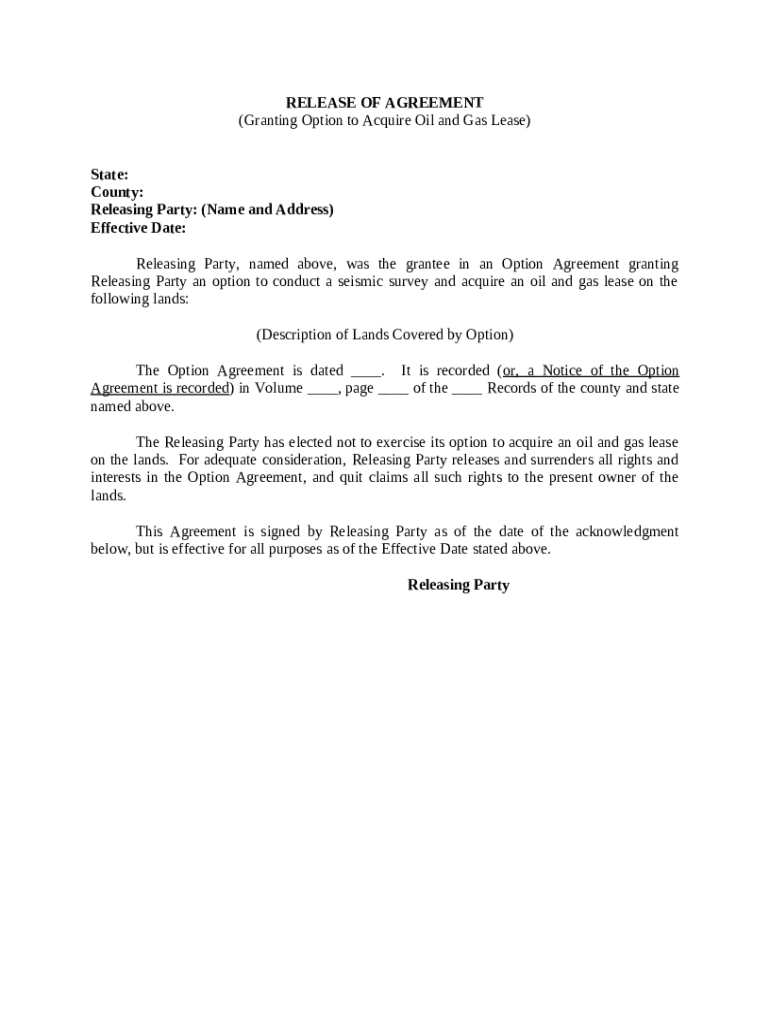 Get the free Release of Agreement Granting Option to Acquire Oil and Gas Lease template