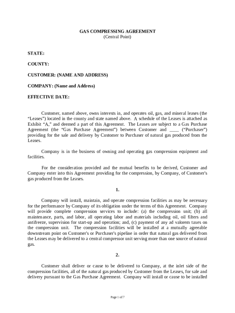 Get the free Gas Compressing Agreement - Central Point template