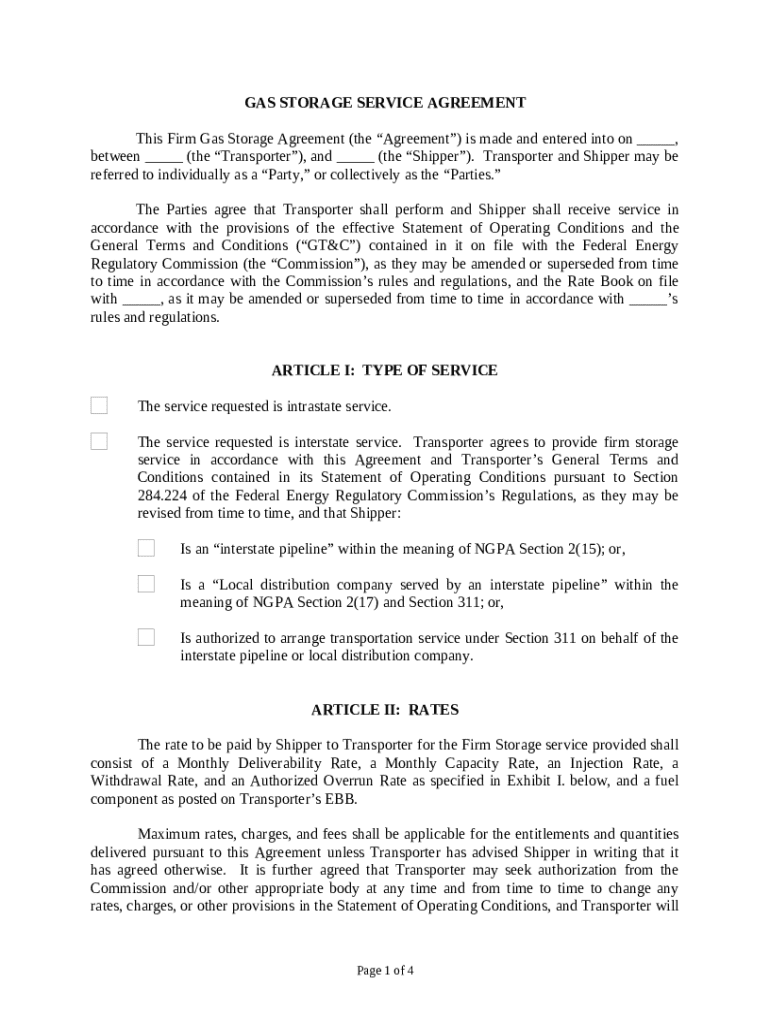 The Gas Storage Service Agreement outlines the agreement governing storage and transport of gas, ensuring fair practices.