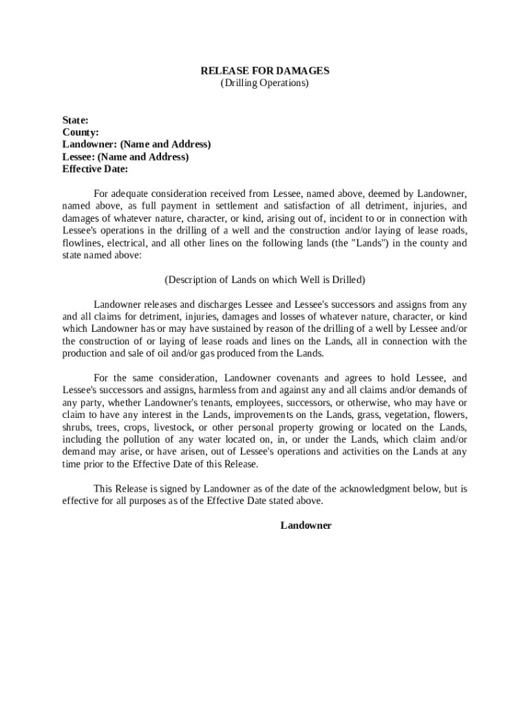 Get the free Release For Damages Drilling Operations template