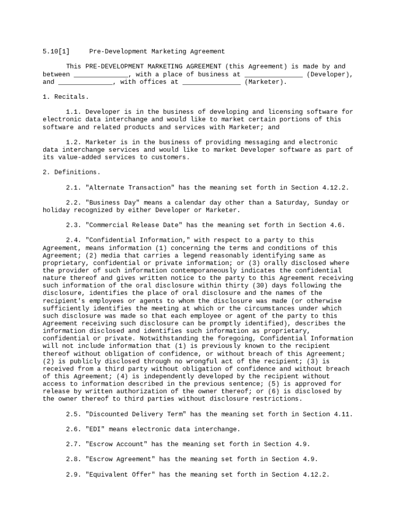 Get the free Pre-Development Marketing Agreement template
