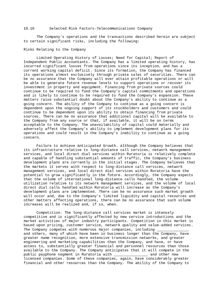 Get the free Selected Risk Factors - Telecommunications Company template