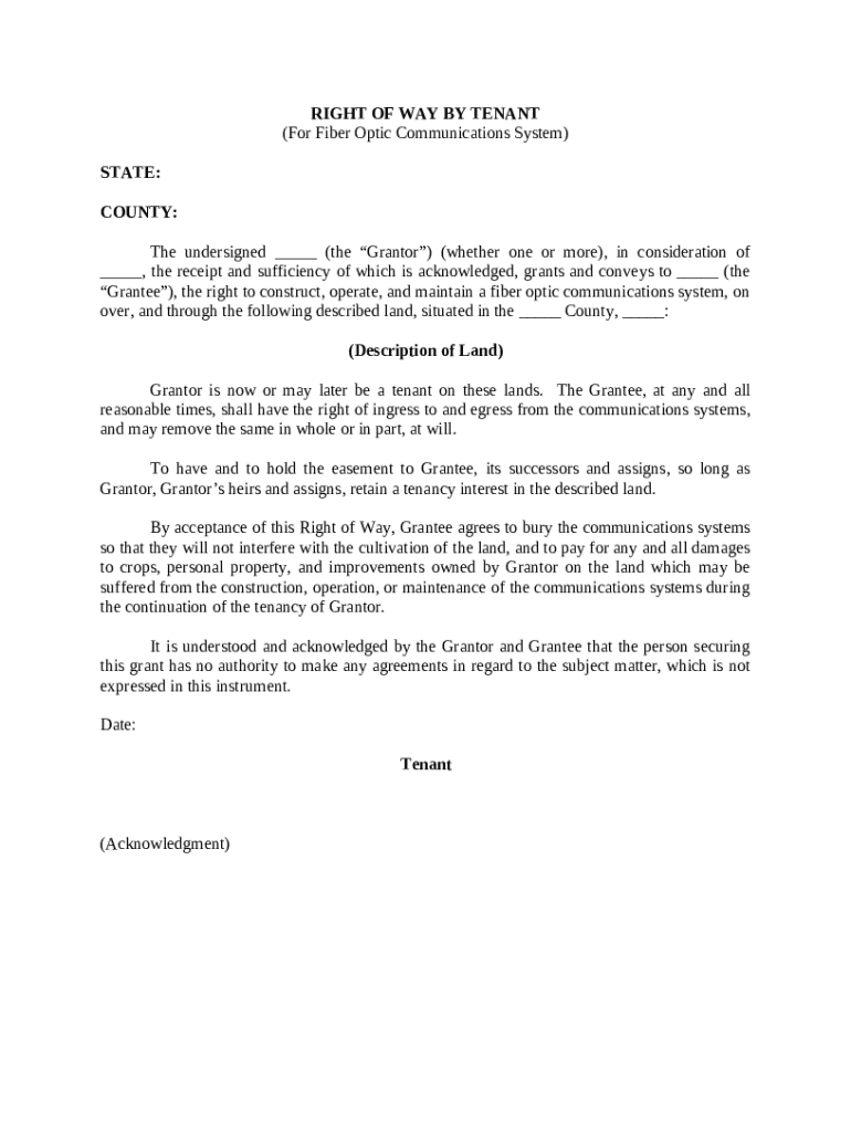 Get the free Right of Way by Tenant (For Fiber Optic Communications System) template