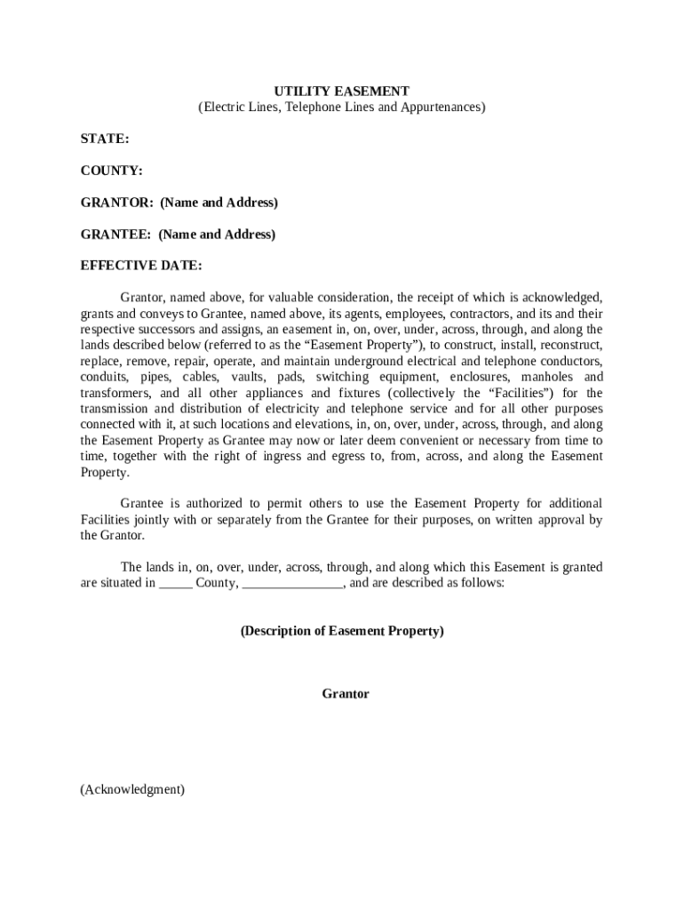 Get the free Utility Easement (Electric Lines, Telephone Lines and Appurtenances) template