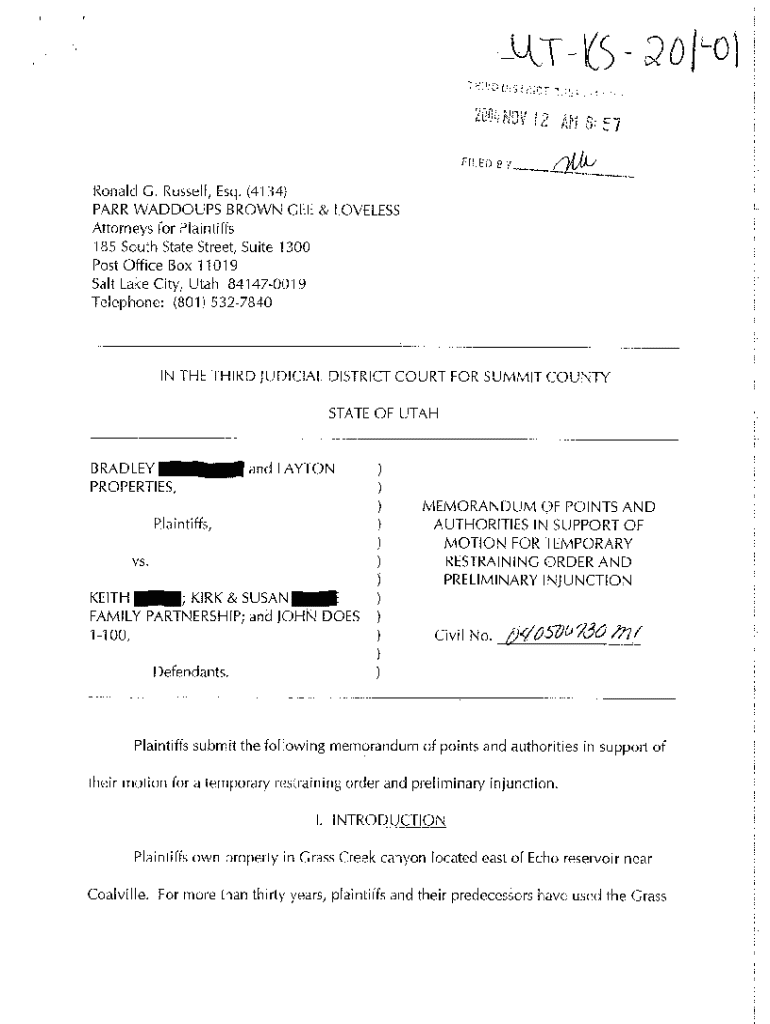 Get the free A04 Memorandum of Points and Authorities in Support of Motion for Temporary Restrain...