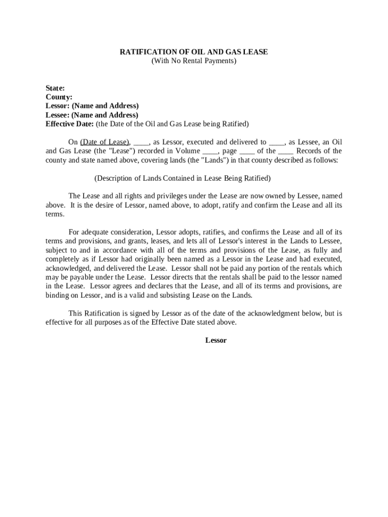 Ratification serves critical purposes for both lessors and lessees. For lessors, it secures their rights to receive payment and enforce lease terms, while for lessees, it ensures that they can legally conduct operations on the property. Moreover, ratification helps to clarify and solidify the expectations of both parties, minimizing the likelihood of future conflicts.