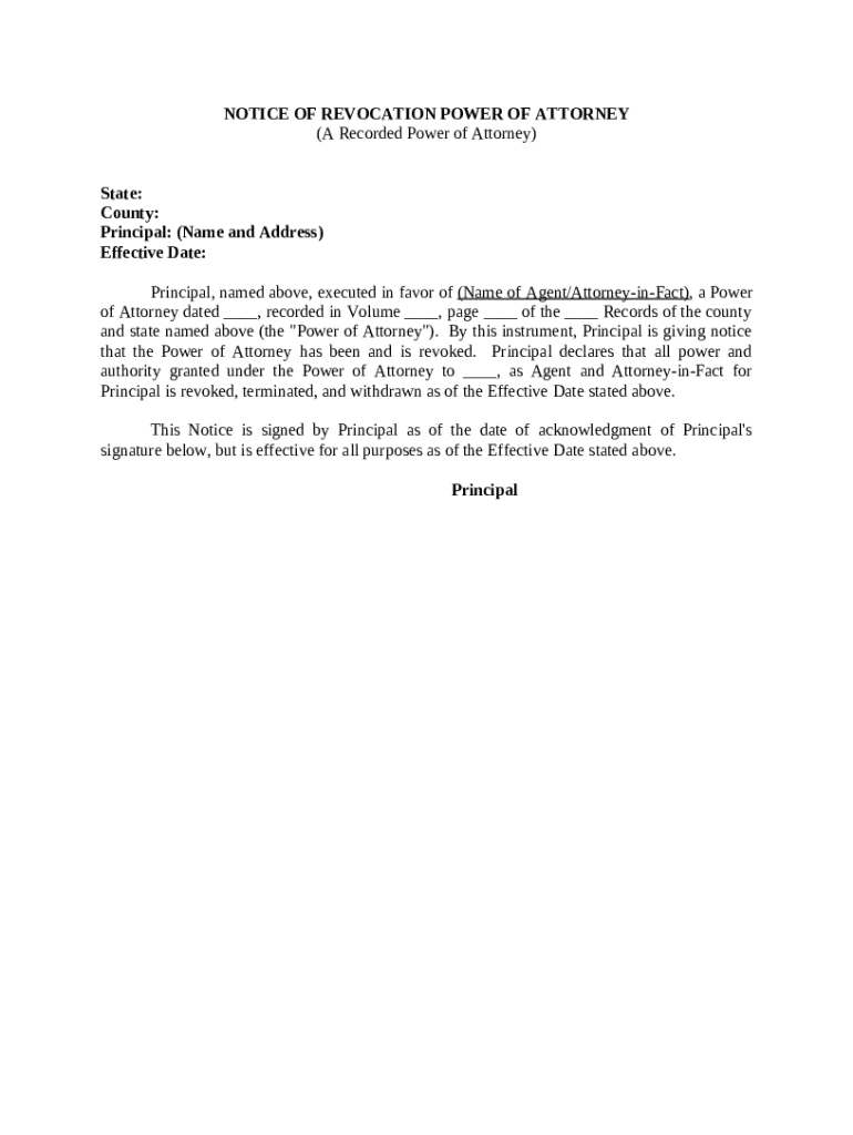 Get the free Notice of Revocation Power of Attorney for a Recorded Power of Attorney template