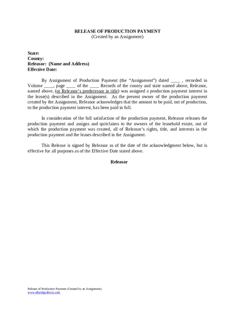 Compliance with state-specific regulations regarding the release of production payments is critical. This not only ensures validity but also protects all parties involved.