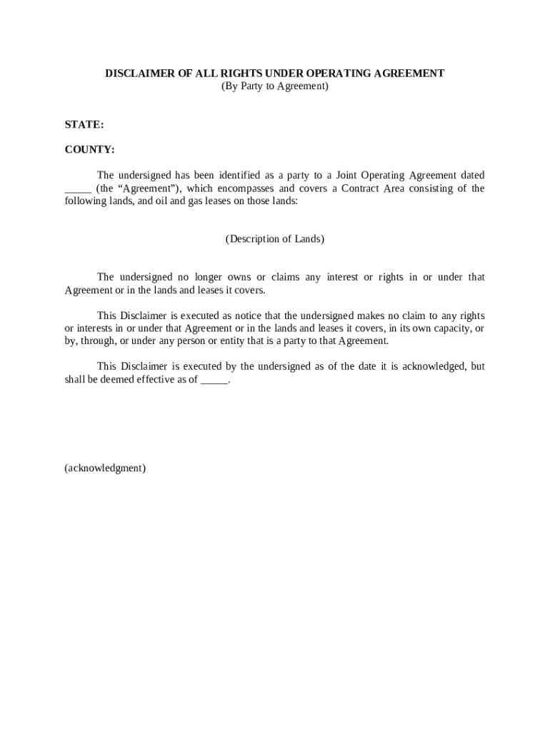 Get the free Disclaimer of All Rights Under Operating Agreement by Party to Agreement template
