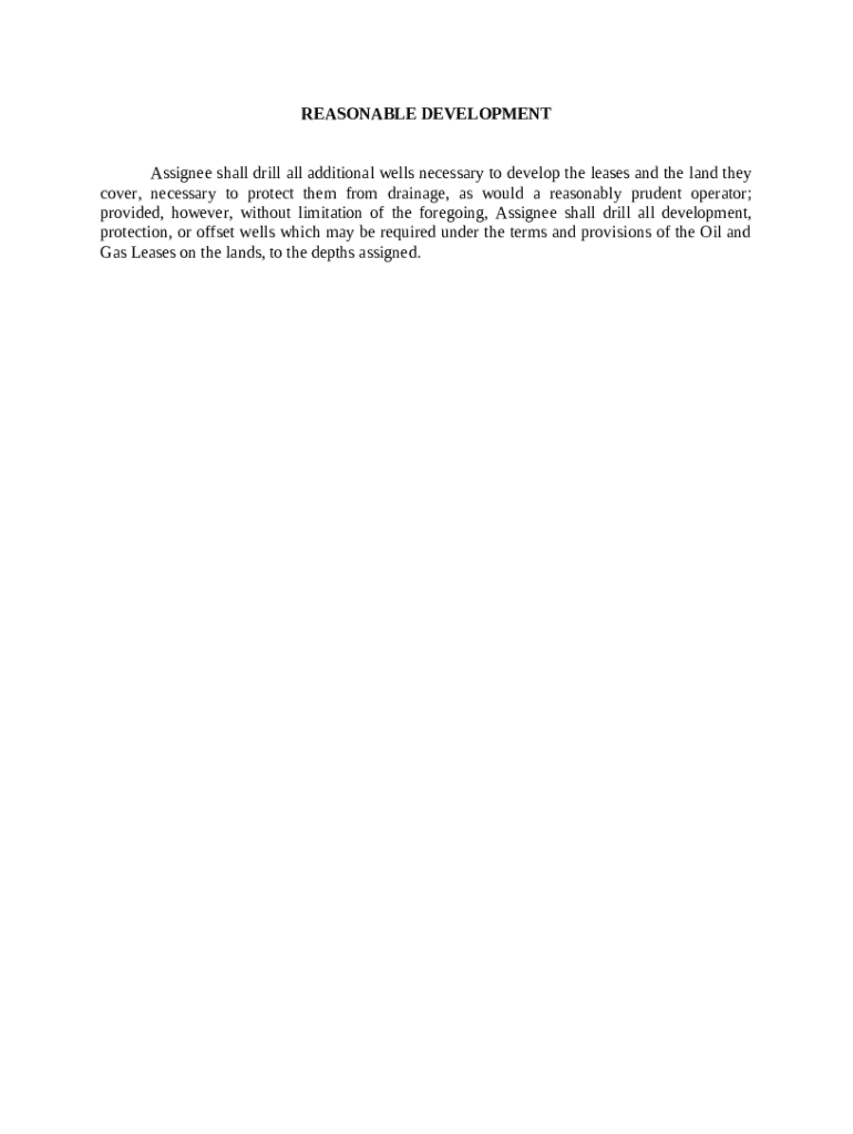 This is a Reasonable Development form. The assignee shall drill all additional wells necessary to develop the leases and the land they cover, necessary to protect them from drainage, as would a reasonably