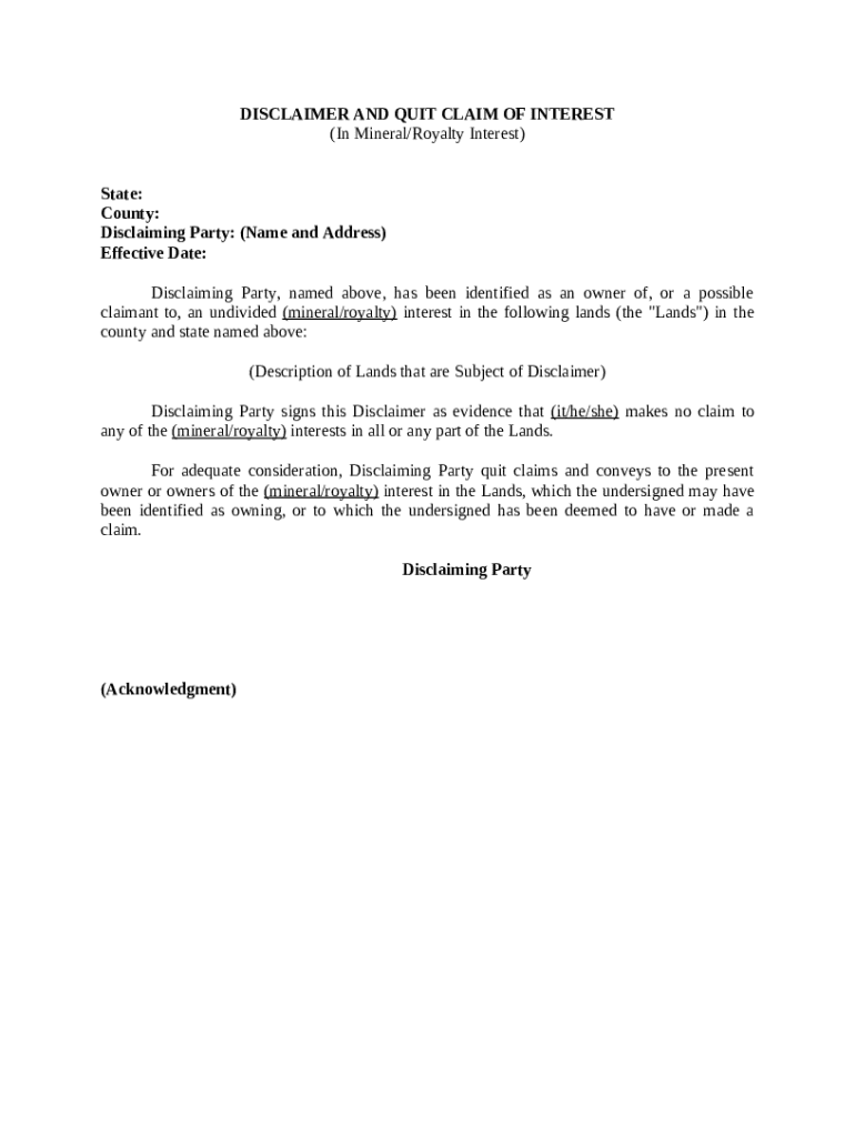 Get the free Disclaimer and Quitclaim of Interest in Mineral / Royalty Interest template