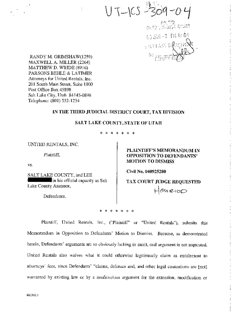Get the free A03 Plaintiff's Memorandum In Opposition To Defendants' Motion To Dismiss