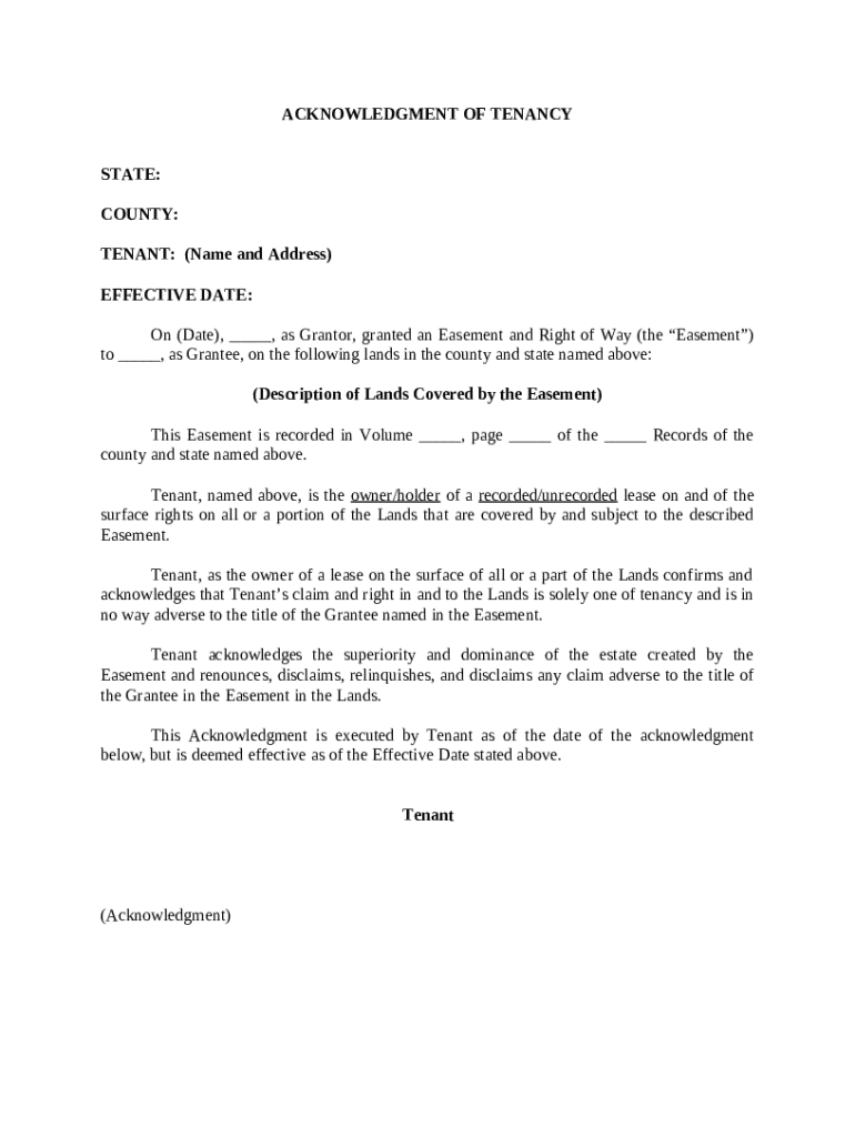 Who needs acknowledgment of tenancy template?