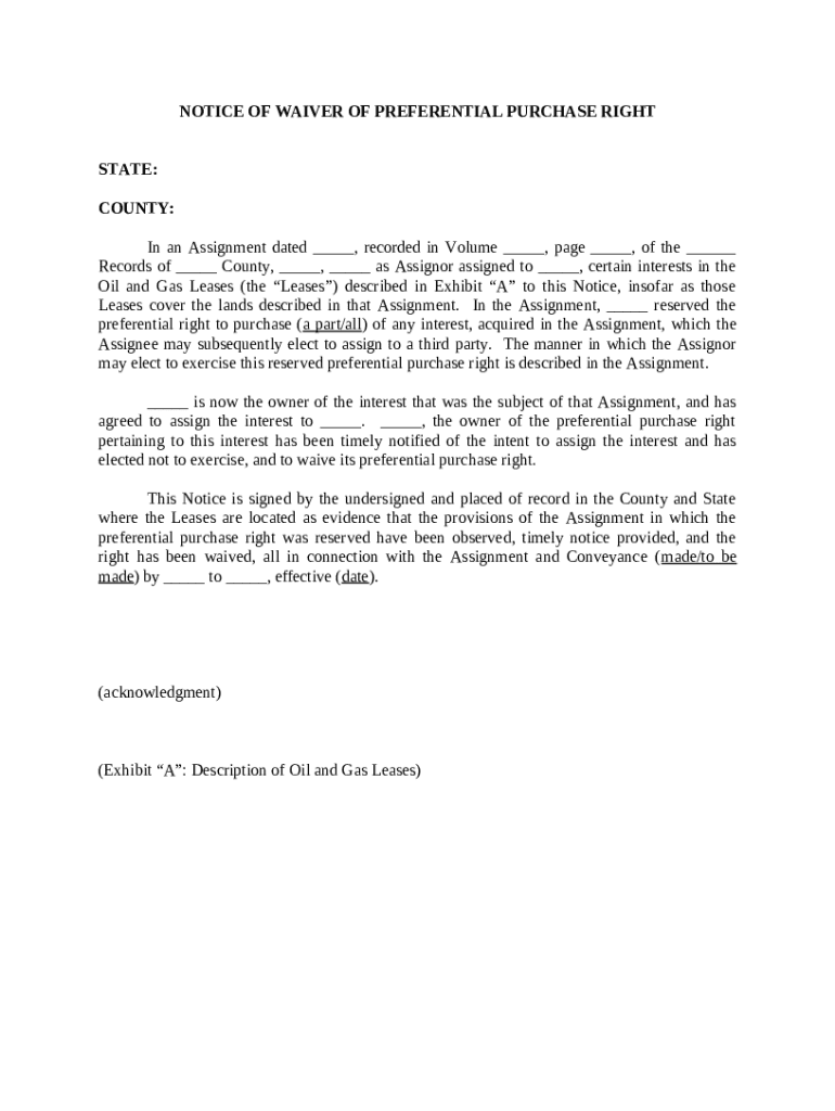 Get the free Notice of Waiver of Preferential Purchase Right template