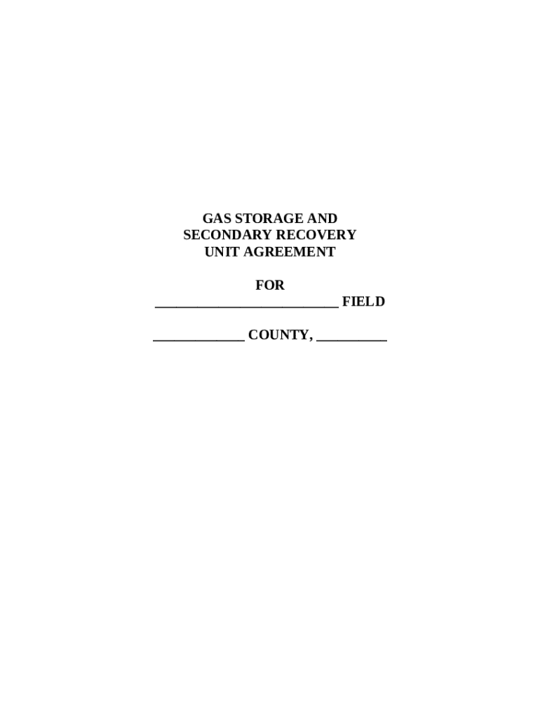 Get the free Gas Storage and Secondary Recovery Unit Agreement template