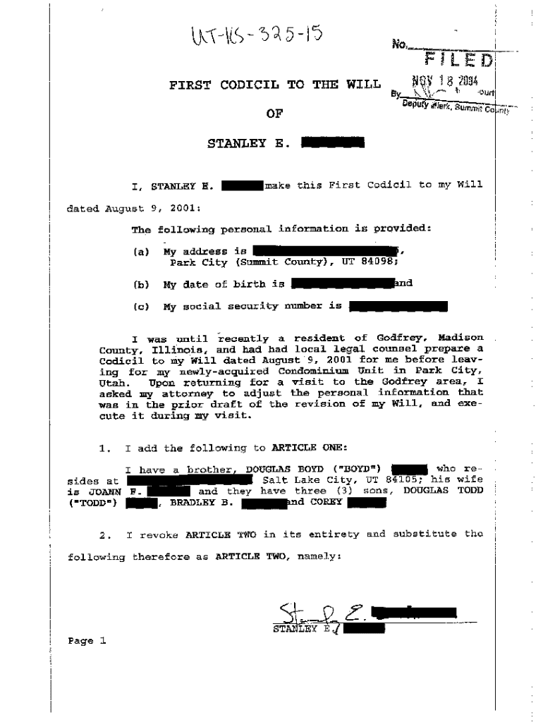 How to fill out the a02 first codicil to