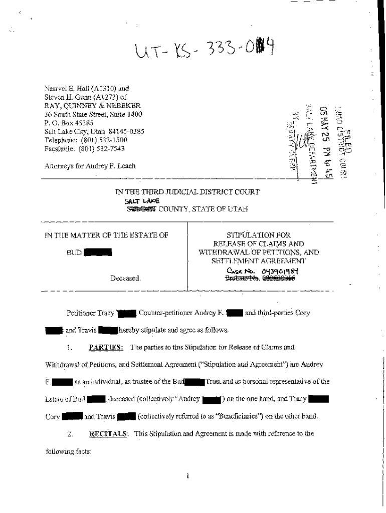 A24 Stipulation for Release of Claims and Withdrawal of Petitions, and Settlement Agreement