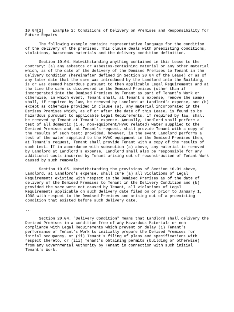 Conditions of delivery refer to the specific stipulations laid out in lease agreements that clarify the responsibilities of the landlord and tenant regarding property delivery. Establishing these conditions before the actual delivery is essential to prevent misunderstandings and ensure compliance. This section covers the importance of clearly defined conditions of delivery and key components that should be included in the delivery condition clause.